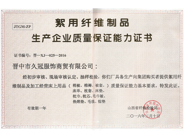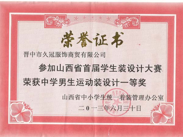 山西久冠服飾有限公司位于晉商故里山西省晉中市。公司注冊商標“久冠”,是山西省教育學會學生服被裝專業(yè)委員會會長單位,中國質(zhì)量萬里行促進會理事單位,中國教育裝備行業(yè)協(xié)會學校后勤裝備管理分會常務理事單位。